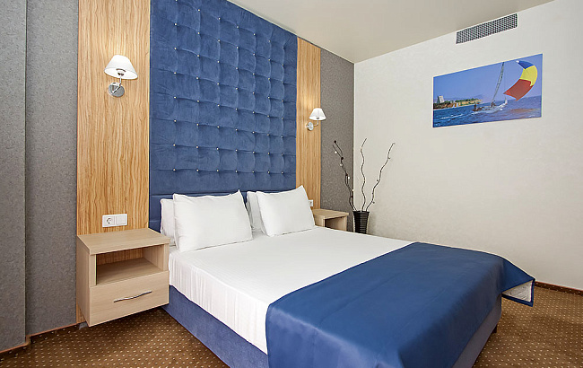 На огороженной территории размещены 3 корпуса: 11- и 6-этажные с лифтами, 3-этажный-без лифта. Жилой фонд отеля рассчитан на единовременное размещение 910 человек.
