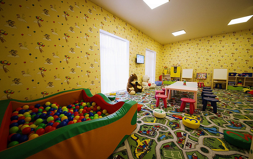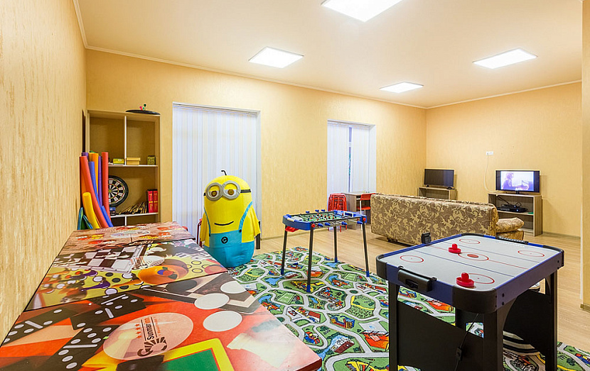 К услугам гостей детская комната с воспитателем, игровая площадка на открытом воздухе, проходят сеансы детского кино и мультфильмов. Просмотр организован в специально подготовленном кинозале, с широкоформатным экраном и системой звука DOLBY Surround.