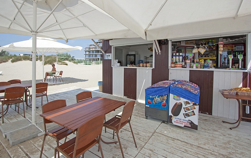 Проход к пляжу оборудован деревянными дорожками, территория огорожена, вход осуществляется строго по гостевым браслетам отеля. Пляж оборудован: шезлонгами, навесами, зонтиками, кабинами для переодевания, туалетами и душевыми, детской игровой зоной, волейбольной площадкой, имеется спасательный и медицинский пост.